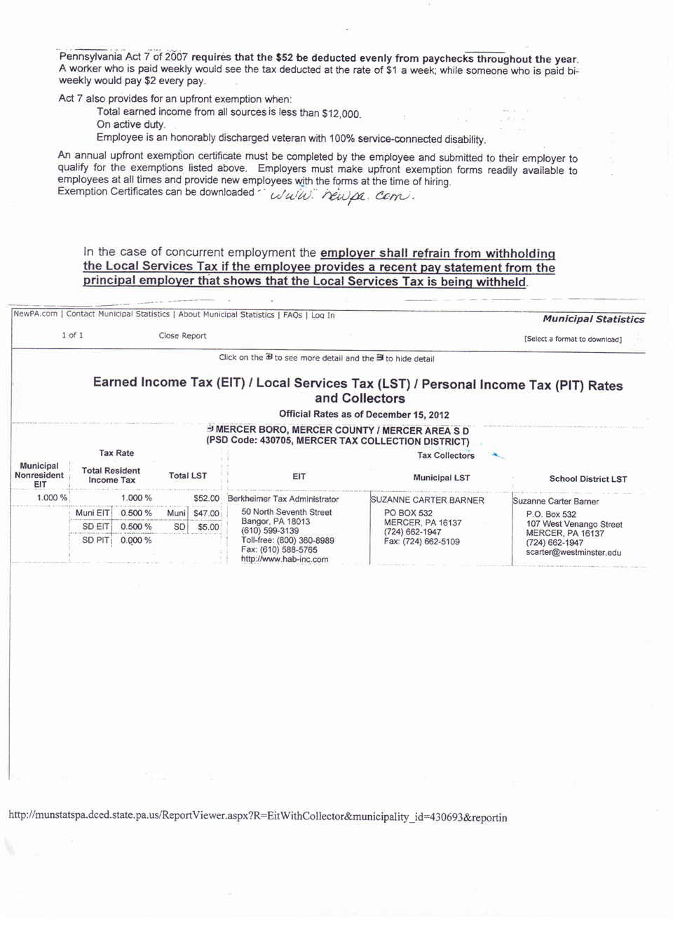 (Billed July 1 to all residents over 18. $10 for school and $5 for Mercer Borough)
